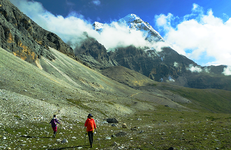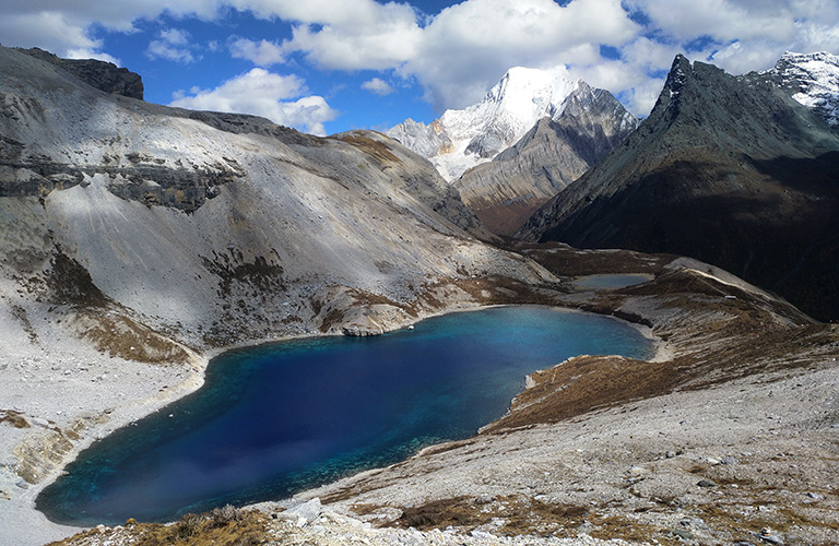 From Luorong we start to have splendid views of the two of the sacred mountains of Yading: Mt. Chenardorje and Mt. Jampayang. These mountains are about 6000 meters’ tall and this place is well protected to remain its original looking. From Luorong Yak Ranch the hiking starts. It is total around 5km necessary walking from Luorong to Milk Lake and 5-color Lake. The first half of the 5km can be replaced by a horse-ride. Please note the horses are not always available during busy season. If we want to use horse we may need to go there as early as possible during busy seasons. Although the most challenging walk of the 5km is the second half where the horse can't go. The first half is mainly flat and easy to walk. The second half of the 5km is the challenging part because it is going up including some steep sections. A lot of visitors turn around by the steep part due to the high altitude and difficulty of walking. Normally from Luorong walk to Milk Lake takes around 3-4 hours.