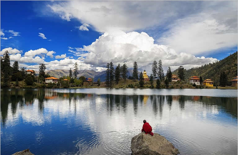 Today is our second day of visit to Yading. We start after breakfast from our hotel and use the public bus again to Longtongba and walk to Chonggu. Today we will go visit Pearl Lake above Chonggu Temple by the foot of Mt. Chenrezig. The Pearl Lake is by the foot of Mt. Chenrezig. It is a stunning lake with beautiful reflection of mountains around it. Pearl Lake is also called Zhuoma Lacuo and it is the smallest lake and a green lake. Mt. Chenrezig is considered by local people a Buddha with significance of religious sacredness. The walk up to the lake is around 1 hour. We will spend some time around the lake to take photos and then come back the same way to Chonggu. For fit people and if time allows we can also use the golf car again to Luorong and walk the 7km down the Chonggu Steppe. It is a pleasant walk down on boardwalk for around 2 hours.